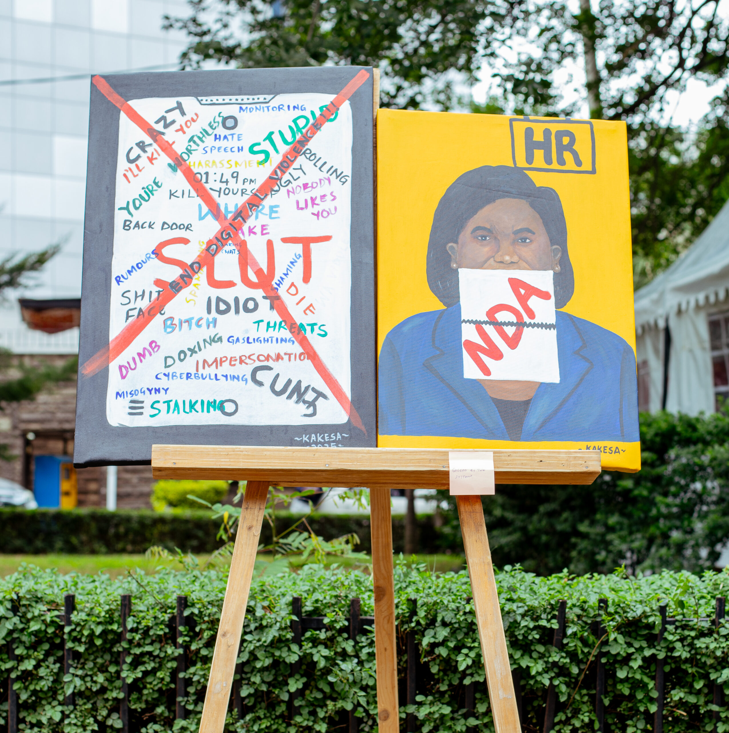 Femicide awareness painting by Mary Kakesa at the Forum CiV cohort 3 final showcase event, Kenya 2025. Photo Courtesy of ForumCiv regional office for Eastern and Southern Africa region.